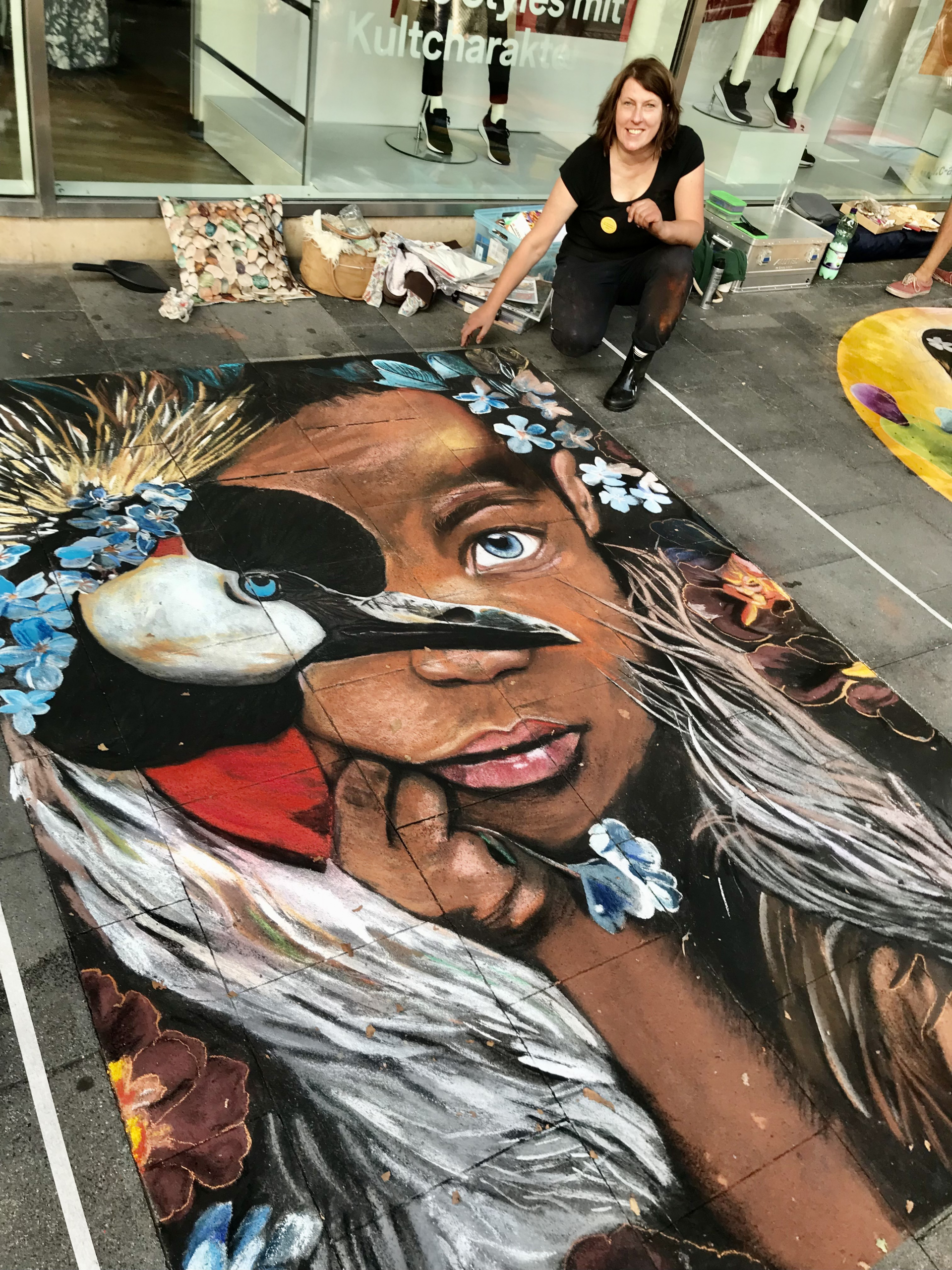 Seit 2004 nimmt sie regelmäßig am Straßenmalerwettbewerb in Geldern teil, davon etwa 10 Jahre in der Meisterklasse. Ihre Motive reichen von den alten Meistern bis hin zu Fantasy und Film.